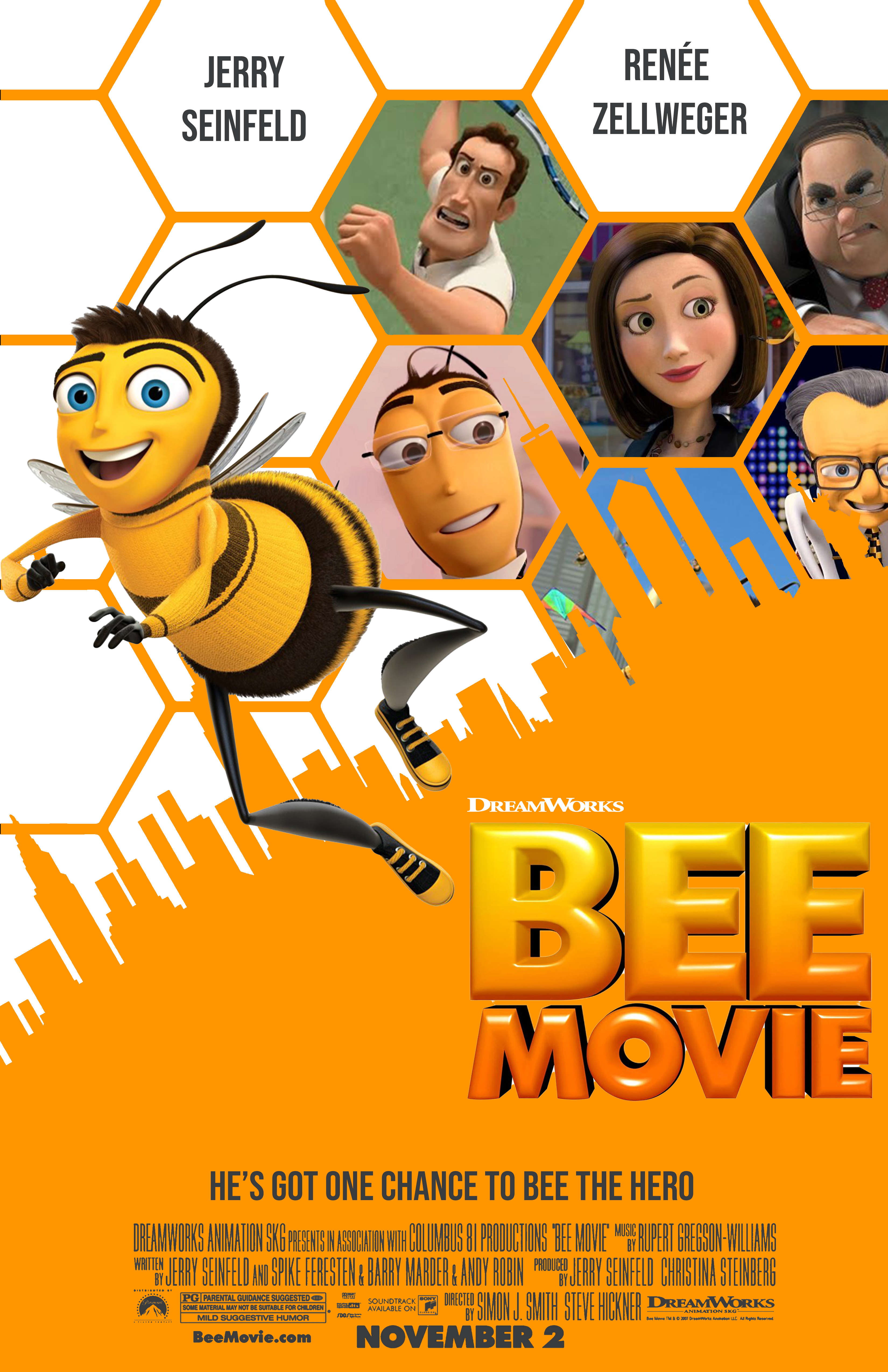 The goal of this project was to redesign a poster for a popular film. I chose Bee Movie, a 2007 Dreamworks animated movie. I let the theming of the film guide my design, drawing on the two worlds of Barry B. Benson: the hive and the city.